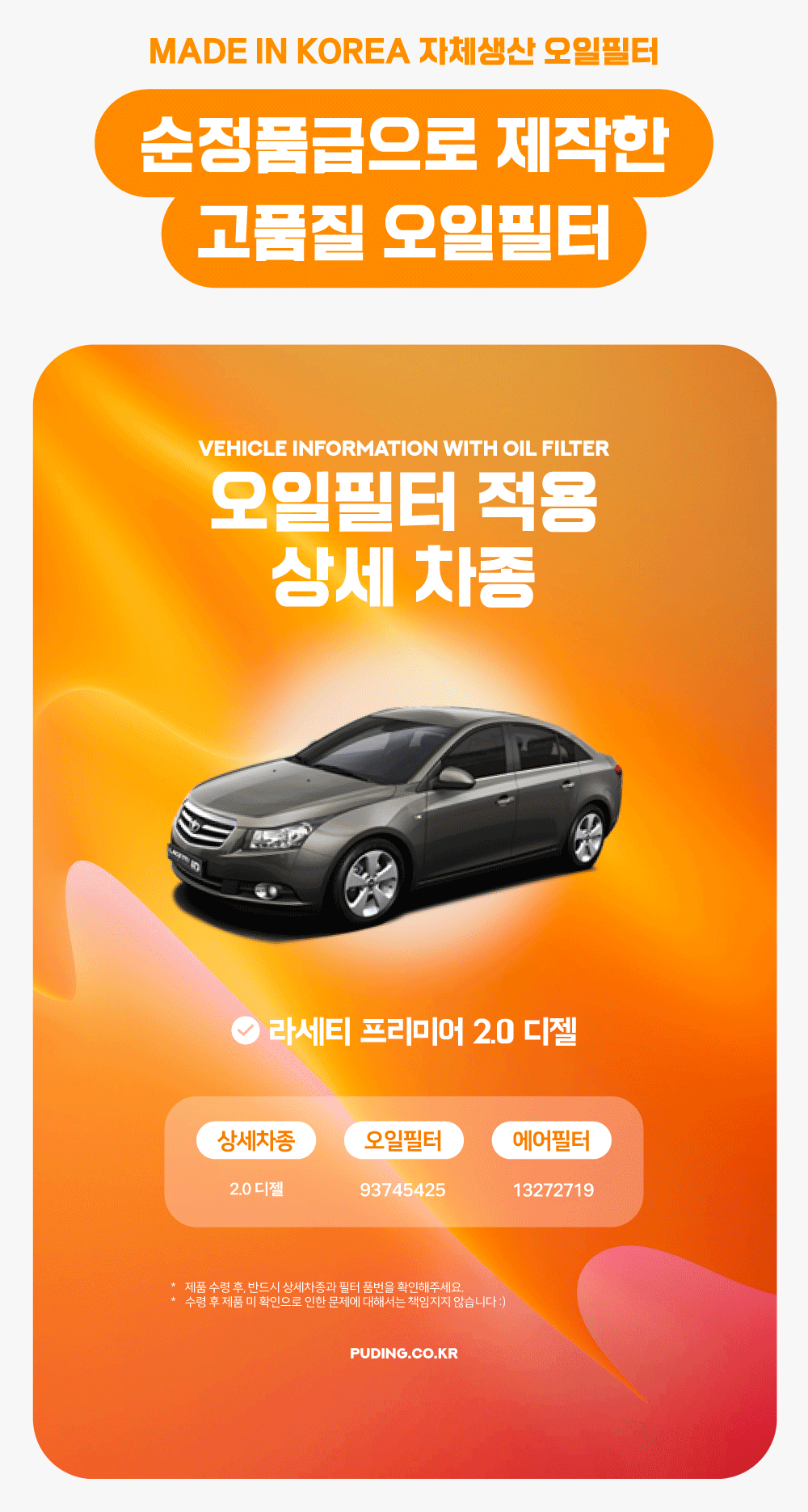 푸딩에서 고품질 오일필터를 저렴하게 교체해보세요! (MADE IN KOREA 자체생산)