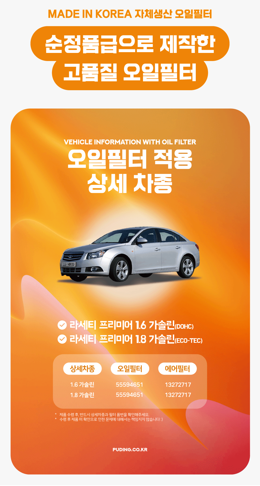 푸딩에서 고품질 오일필터를 저렴하게 교체해보세요! (MADE IN KOREA 자체생산)