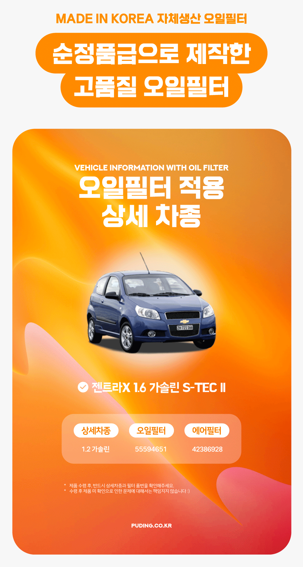 푸딩에서 고품질 오일필터를 저렴하게 교체해보세요! (MADE IN KOREA 자체생산)