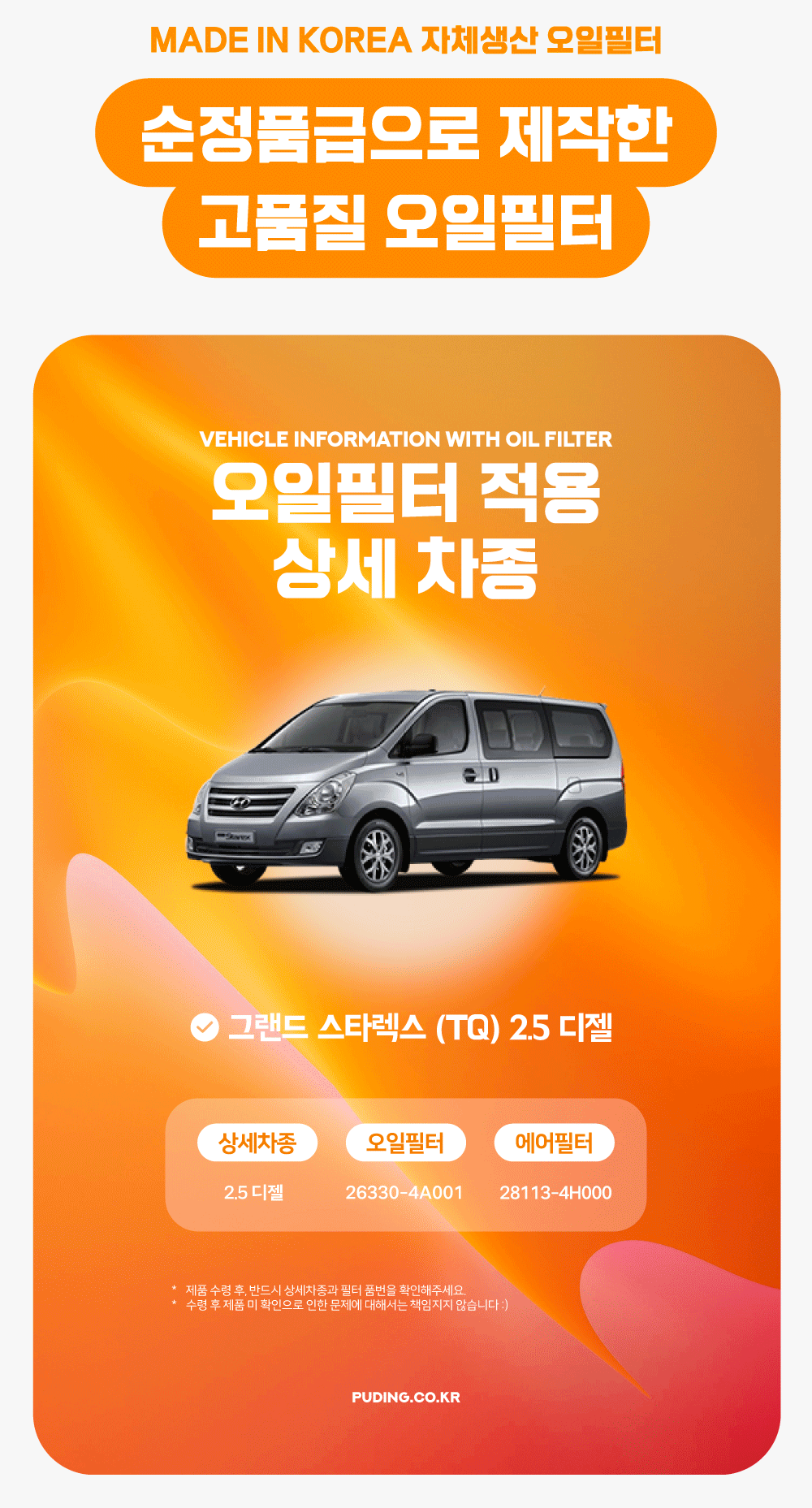 푸딩에서 고품질 오일필터를 저렴하게 교체해보세요! (MADE IN KOREA 자체생산)