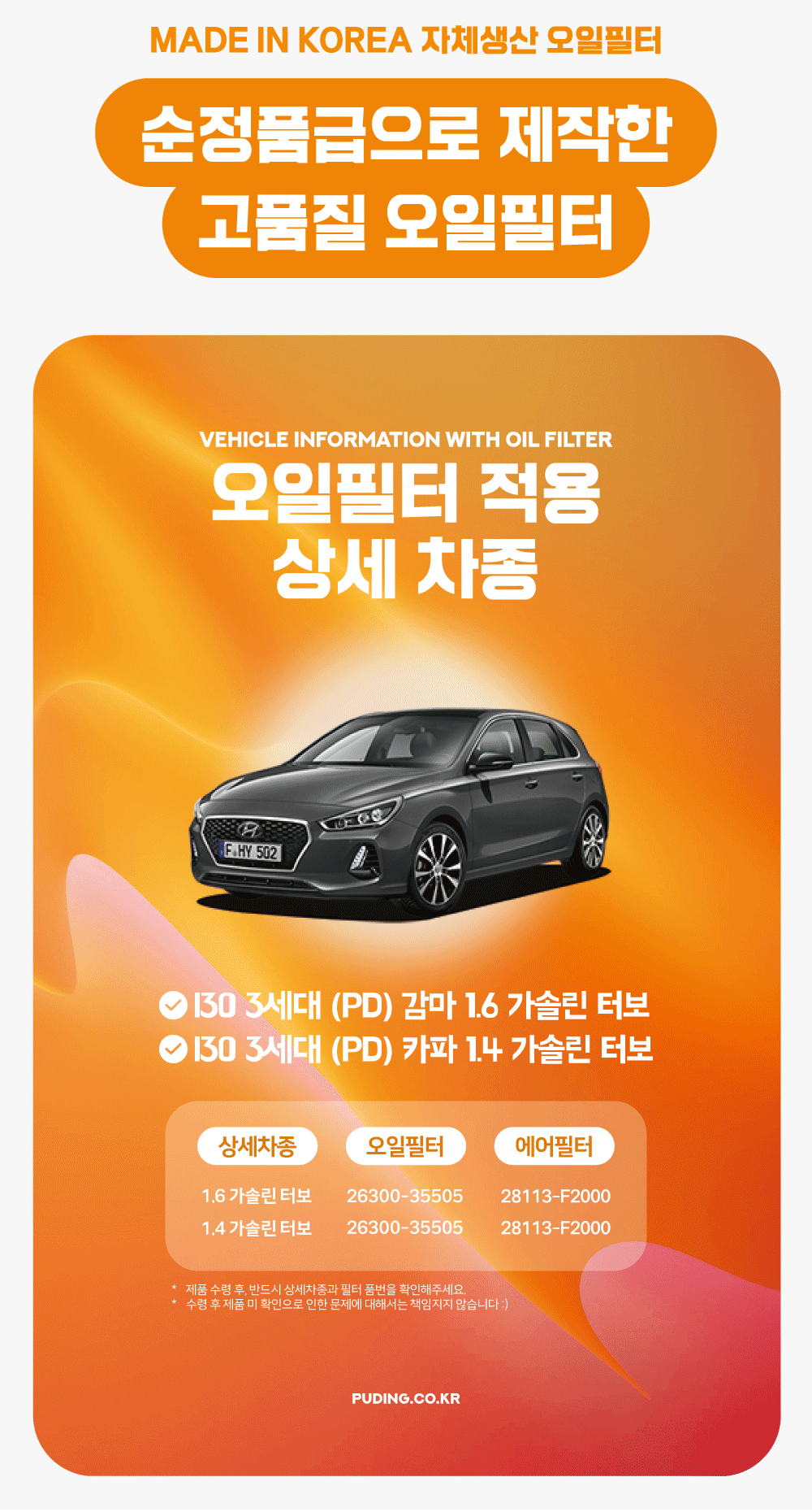 푸딩에서 고품질 오일필터를 저렴하게 교체해보세요! (MADE IN KOREA 자체생산)