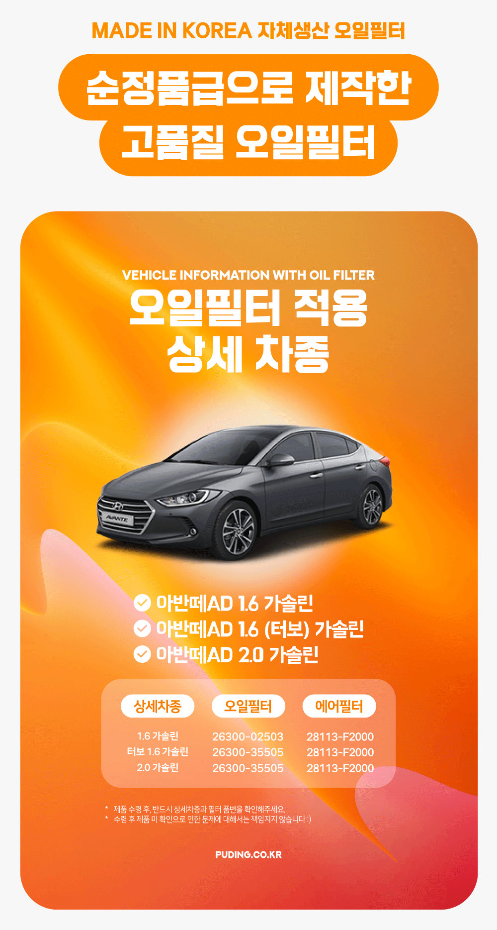푸딩에서 고품질 오일필터를 저렴하게 교체해보세요! (MADE IN KOREA 자체생산)