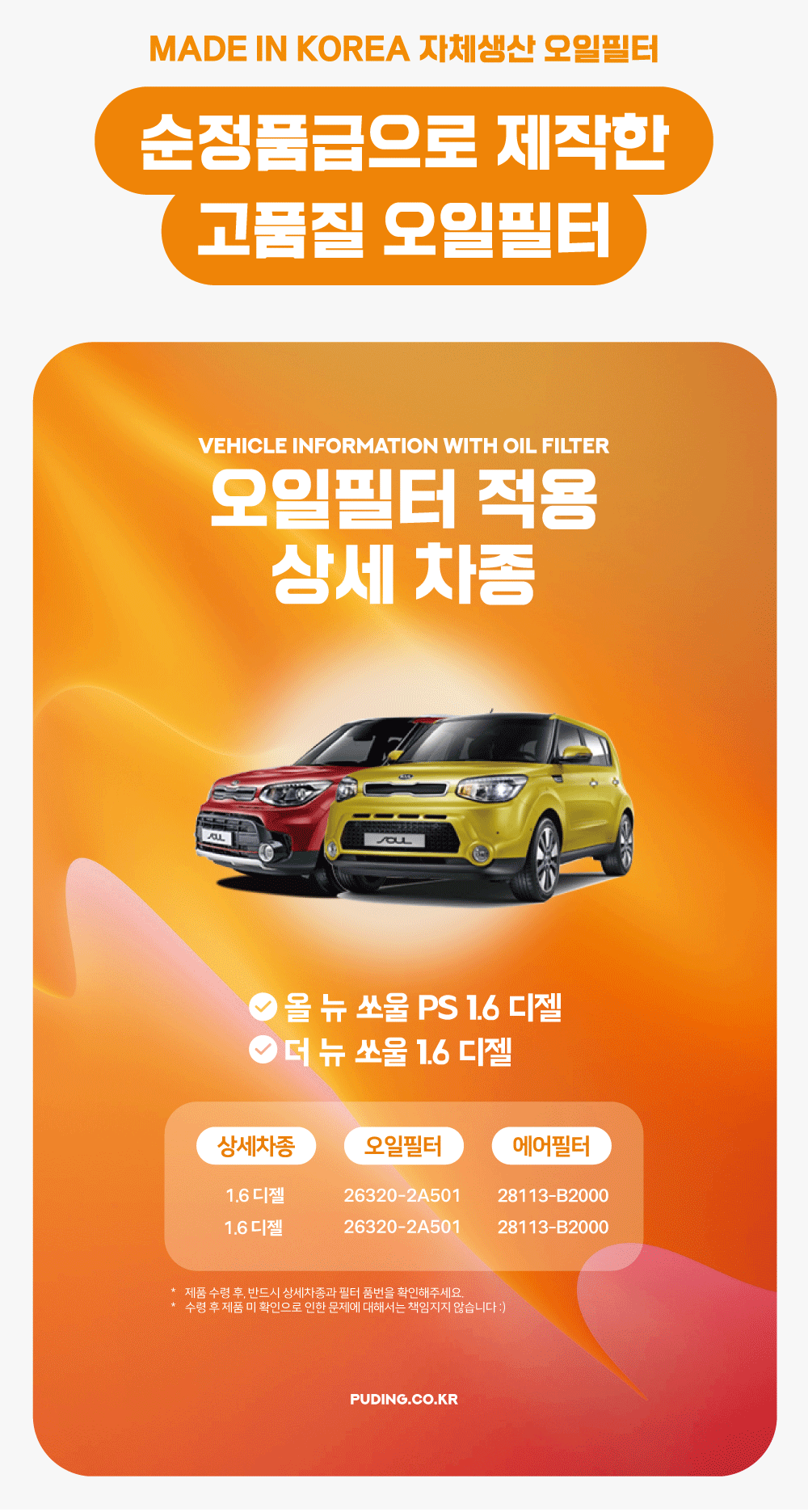 푸딩에서 고품질 오일필터를 저렴하게 교체해보세요! (MADE IN KOREA 자체생산)