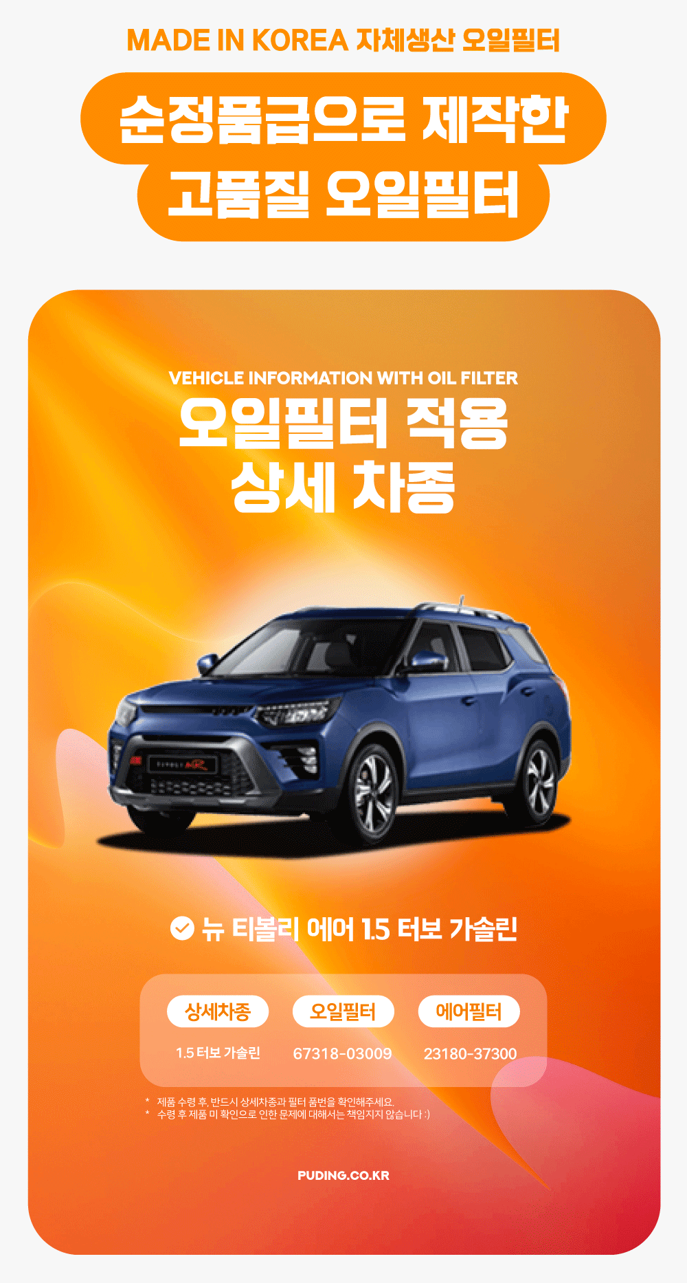 푸딩에서 고품질 오일필터를 저렴하게 교체해보세요! (MADE IN KOREA 자체생산)