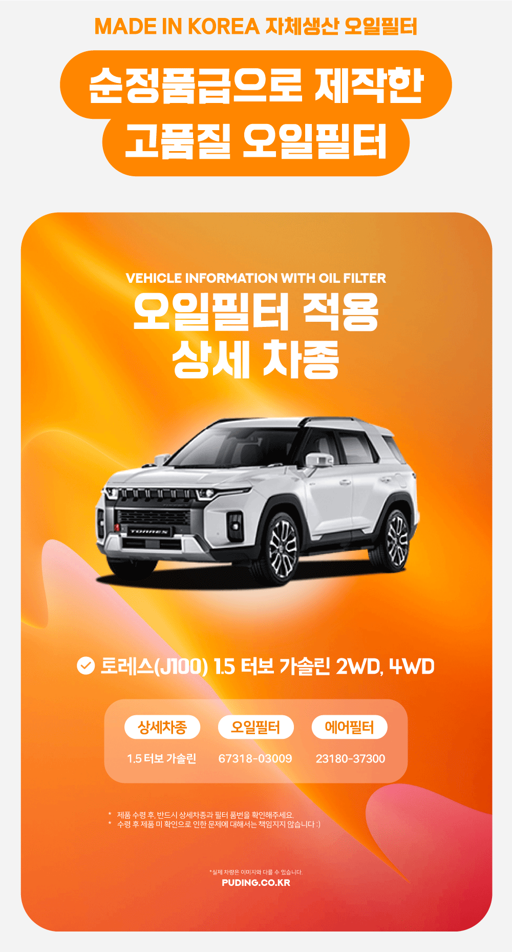 푸딩에서 고품질 오일필터를 저렴하게 교체해보세요! (MADE IN KOREA 자체생산)