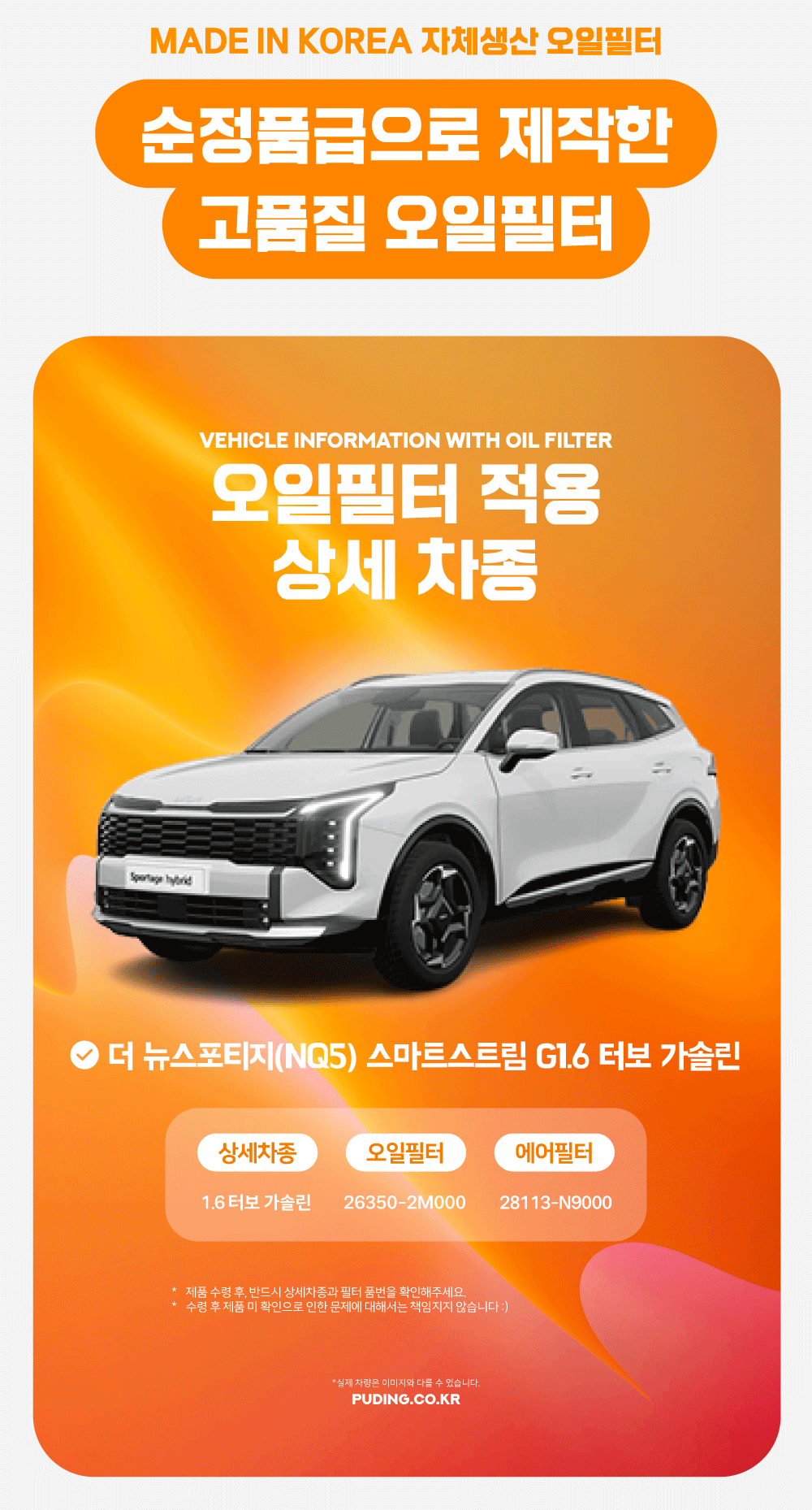 푸딩에서 고품질 오일필터를 저렴하게 교체해보세요! (MADE IN KOREA 자체생산)
