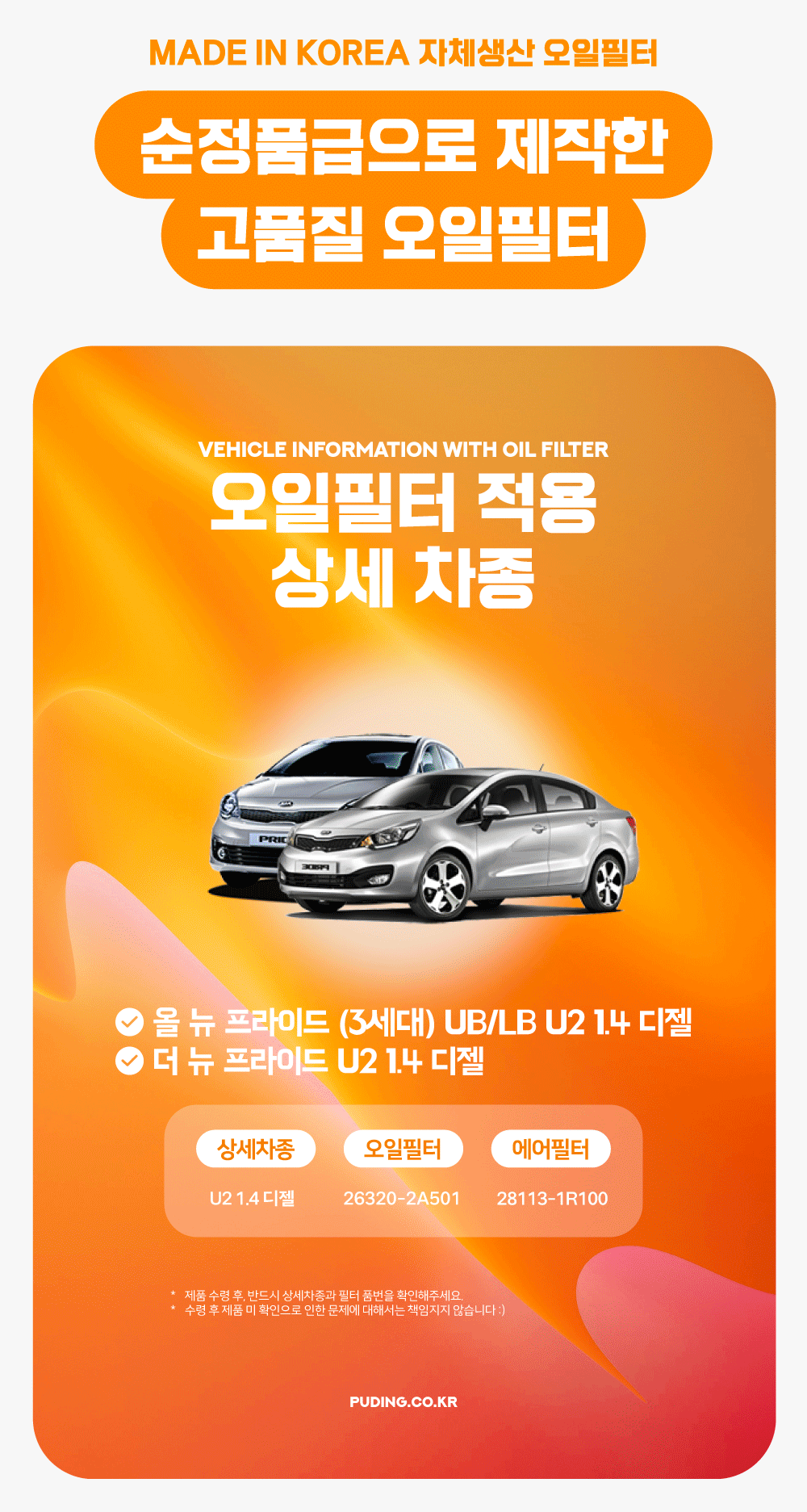 푸딩에서 고품질 오일필터를 저렴하게 교체해보세요! (MADE IN KOREA 자체생산)