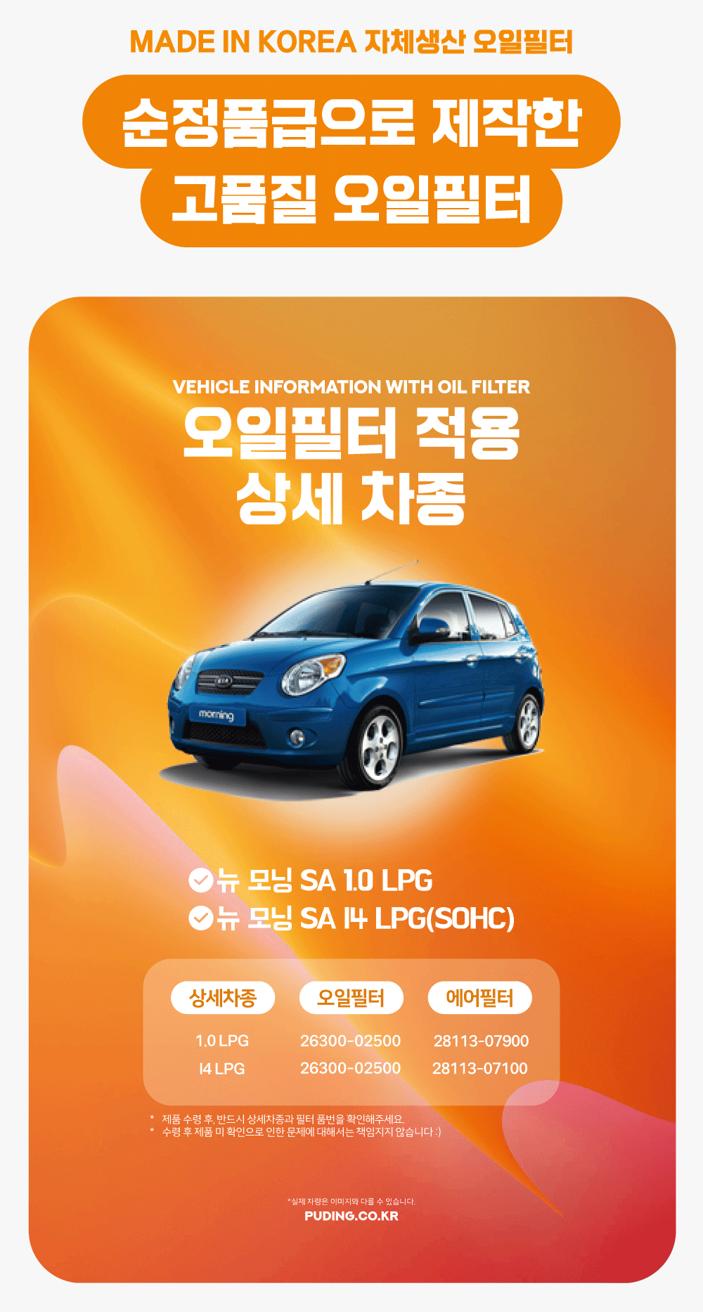 푸딩에서 고품질 오일필터를 저렴하게 교체해보세요! (MADE IN KOREA 자체생산)
