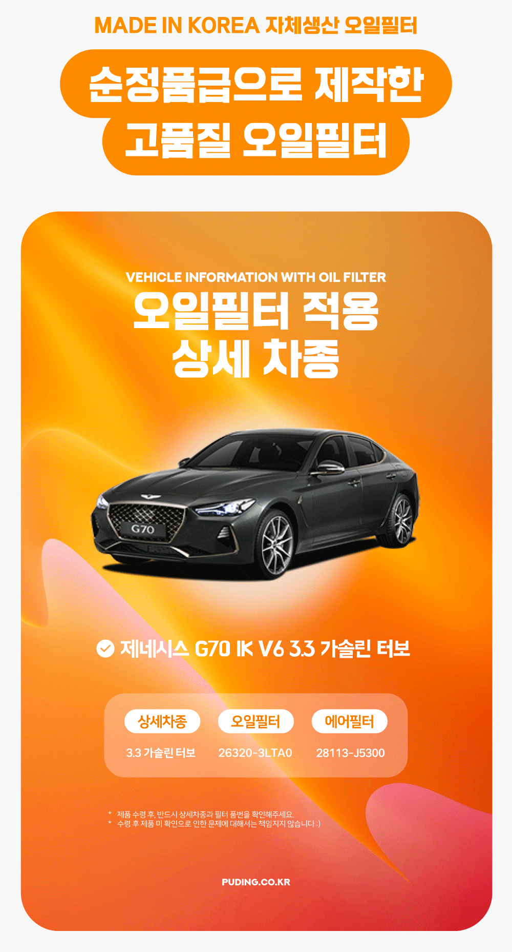 푸딩에서 고품질 오일필터를 저렴하게 교체해보세요! (MADE IN KOREA 자체생산)