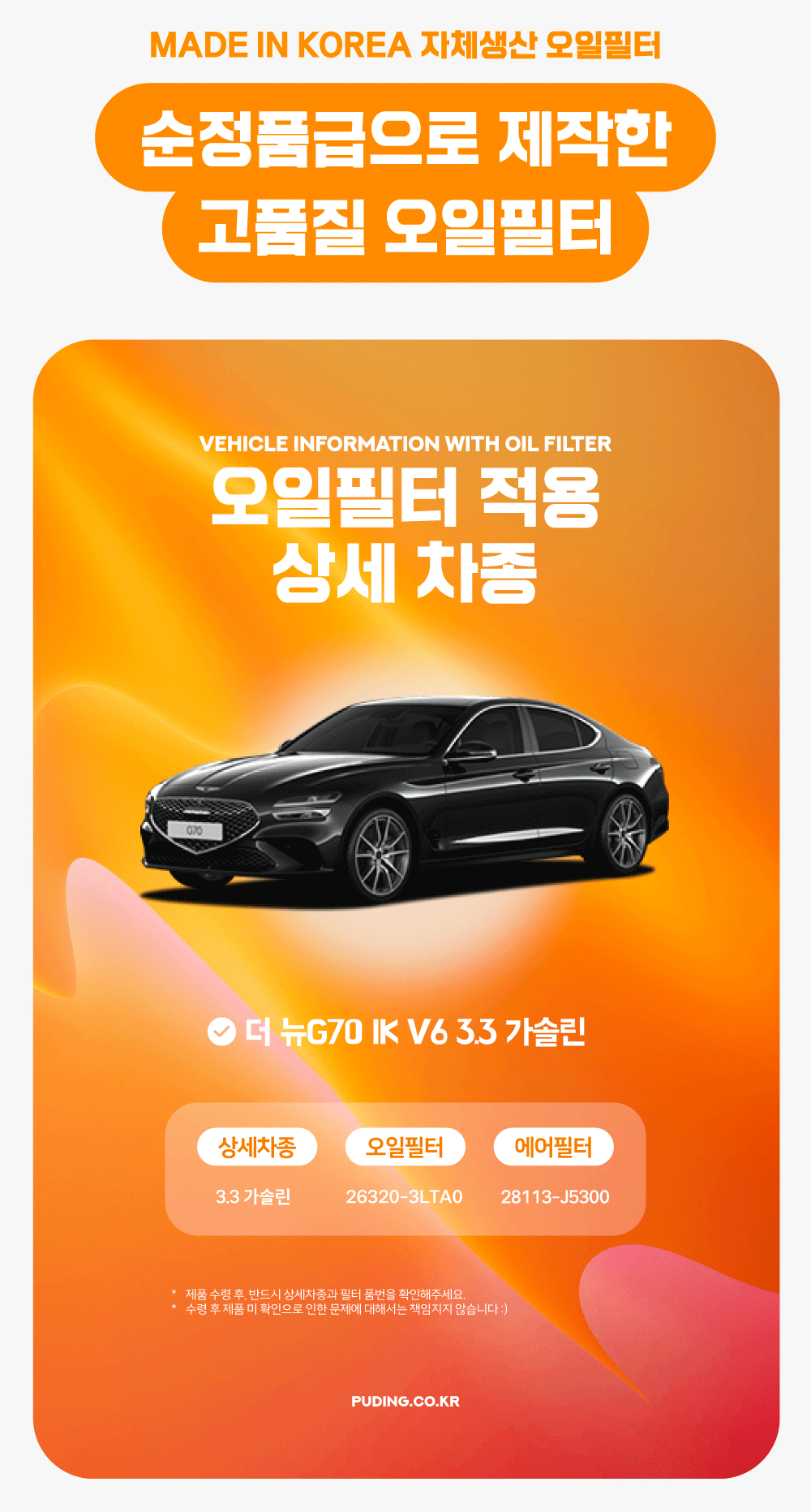푸딩에서 고품질 오일필터를 저렴하게 교체해보세요! (MADE IN KOREA 자체생산)
