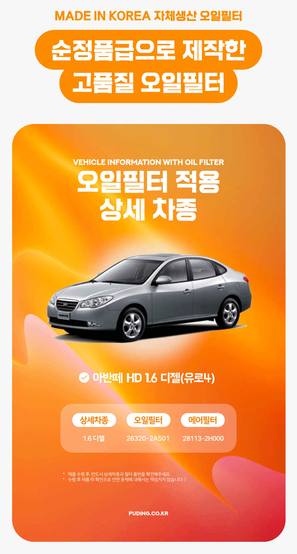 푸딩에서 고품질 오일필터를 저렴하게 교체해보세요! (MADE IN KOREA 자체생산)