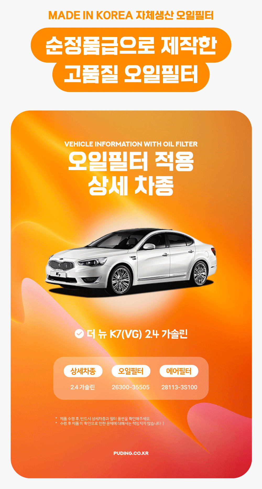 푸딩에서 고품질 오일필터를 저렴하게 교체해보세요! (MADE IN KOREA 자체생산)