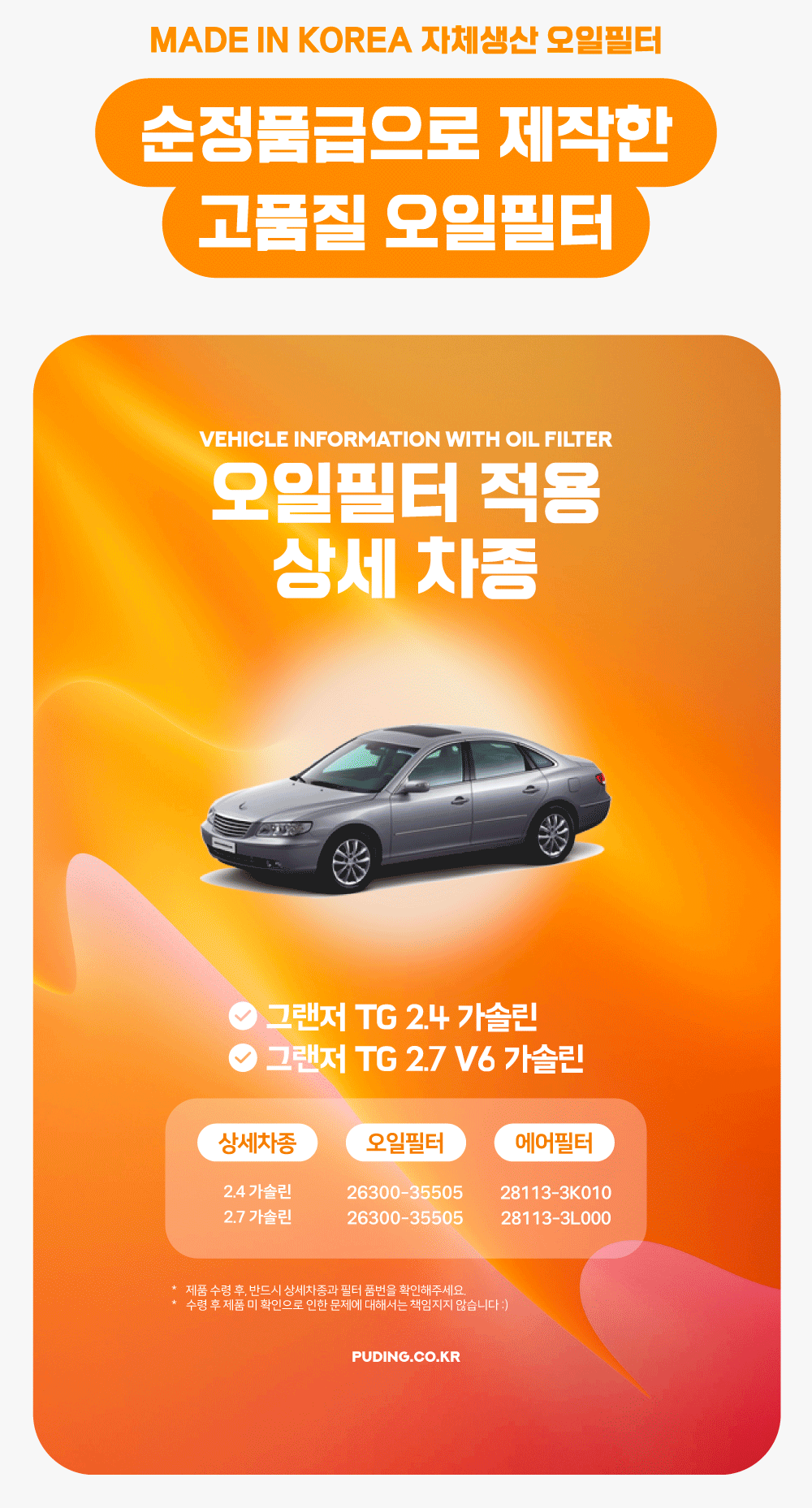 푸딩에서 고품질 오일필터를 저렴하게 교체해보세요! (MADE IN KOREA 자체생산)