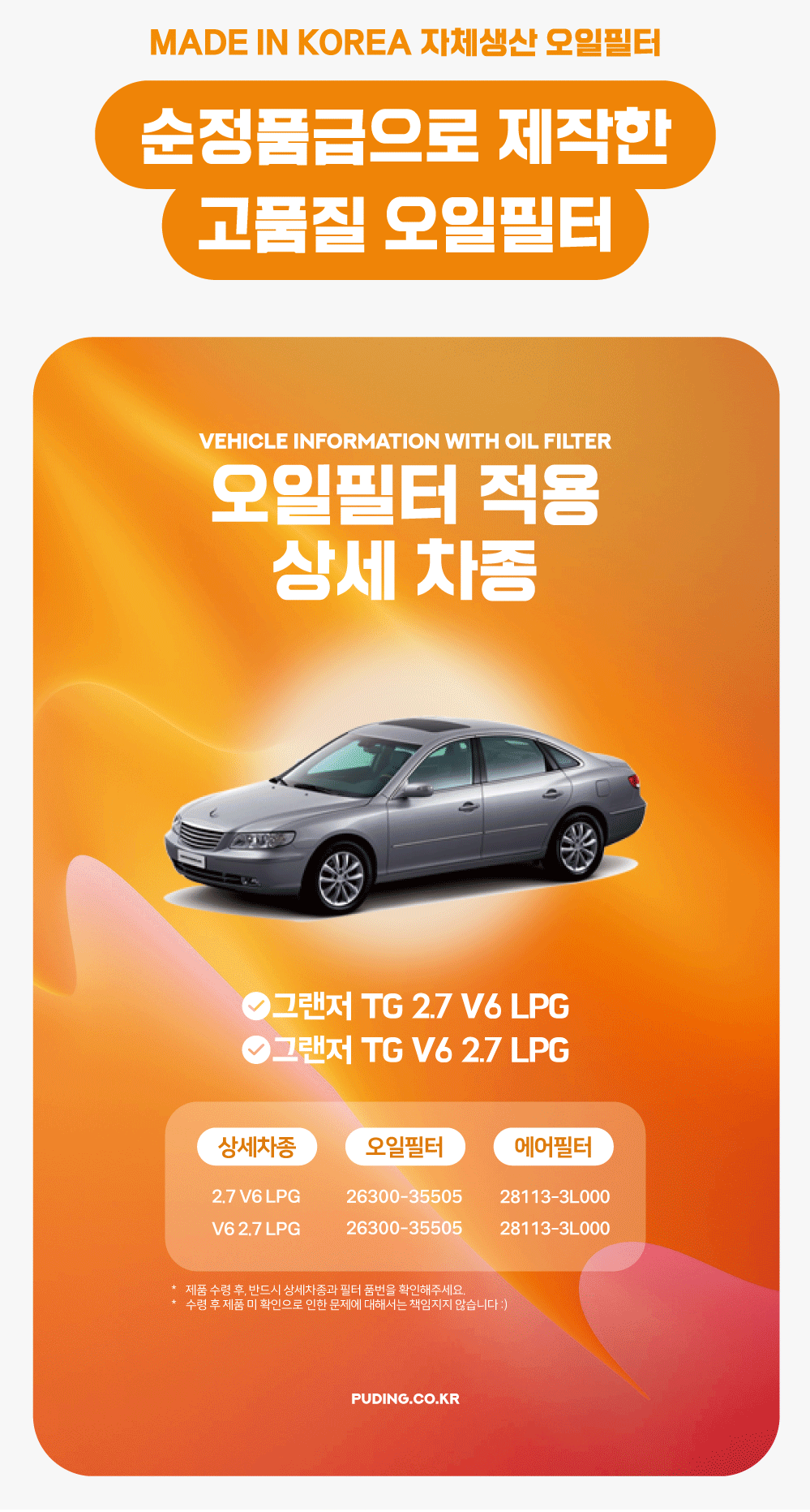 푸딩에서 고품질 오일필터를 저렴하게 교체해보세요! (MADE IN KOREA 자체생산)