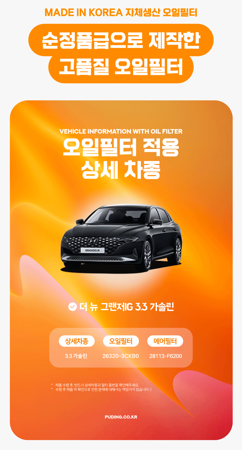 푸딩에서 고품질 오일필터를 저렴하게 교체해보세요! (MADE IN KOREA 자체생산)