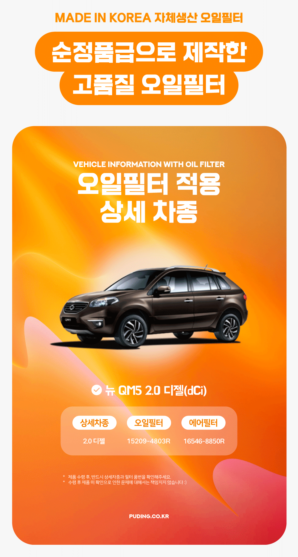 푸딩에서 고품질 오일필터를 저렴하게 교체해보세요! (MADE IN KOREA 자체생산)