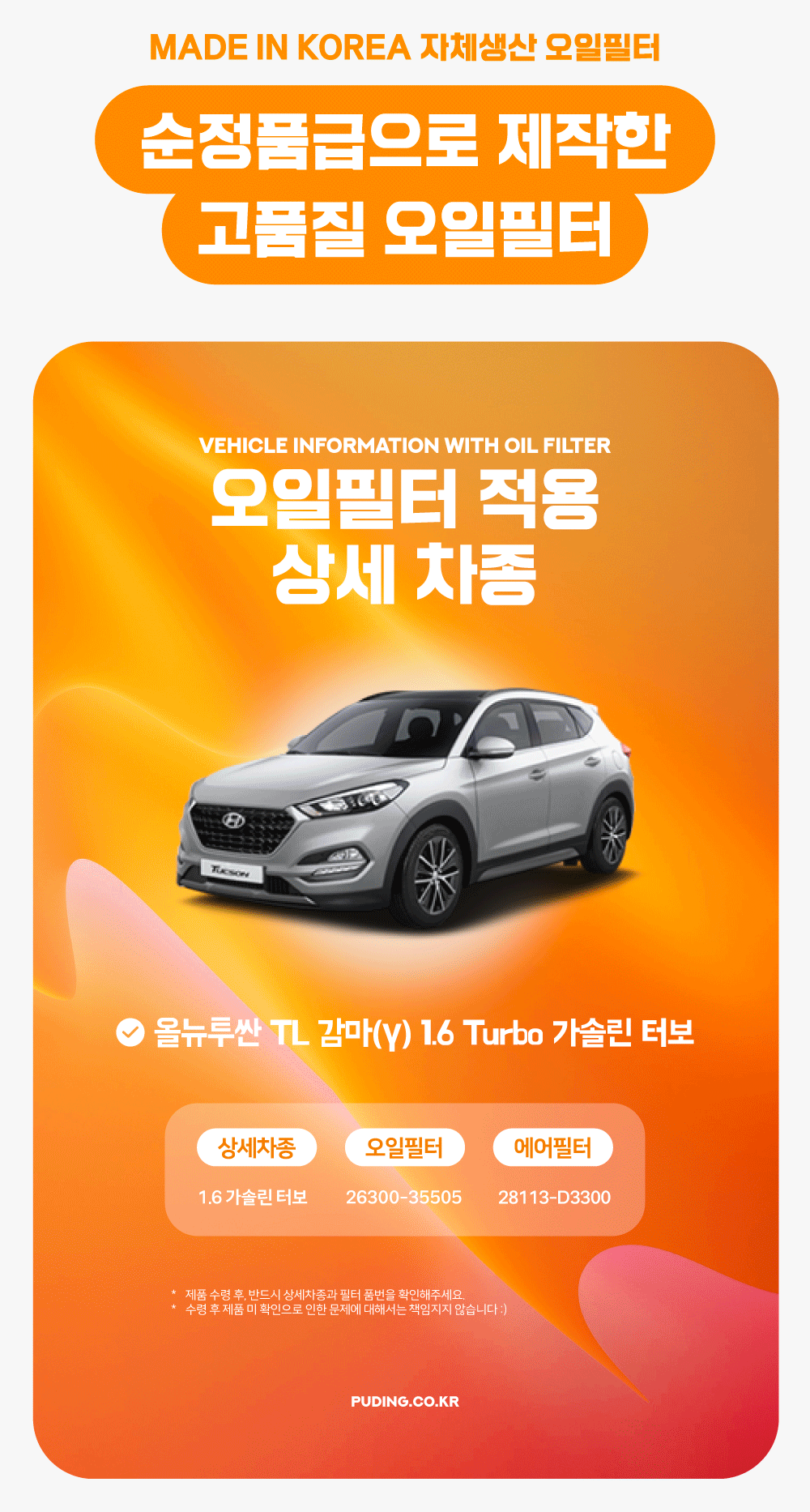 푸딩에서 고품질 오일필터를 저렴하게 교체해보세요! (MADE IN KOREA 자체생산)