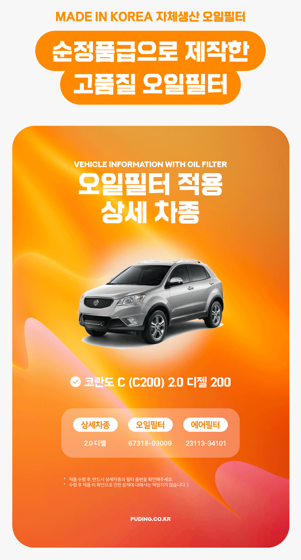 푸딩에서 고품질 오일필터를 저렴하게 교체해보세요! (MADE IN KOREA 자체생산)