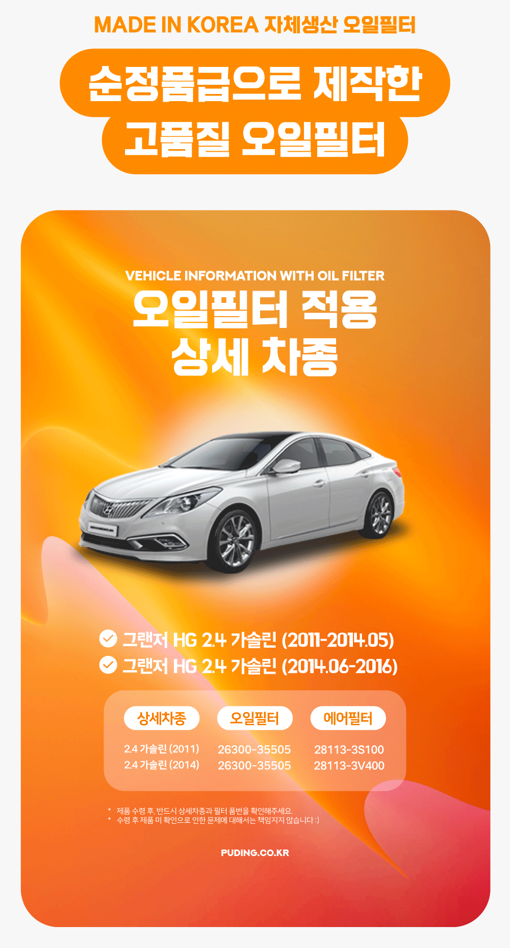 푸딩에서 고품질 오일필터를 저렴하게 교체해보세요! (MADE IN KOREA 자체생산)