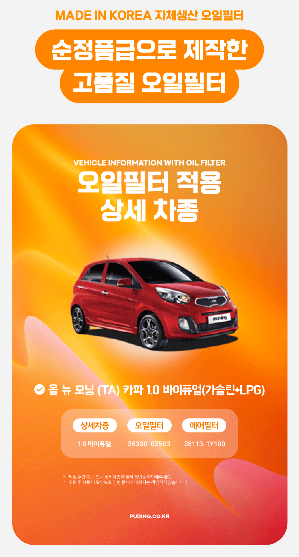 푸딩에서 고품질 오일필터를 저렴하게 교체해보세요! (MADE IN KOREA 자체생산)